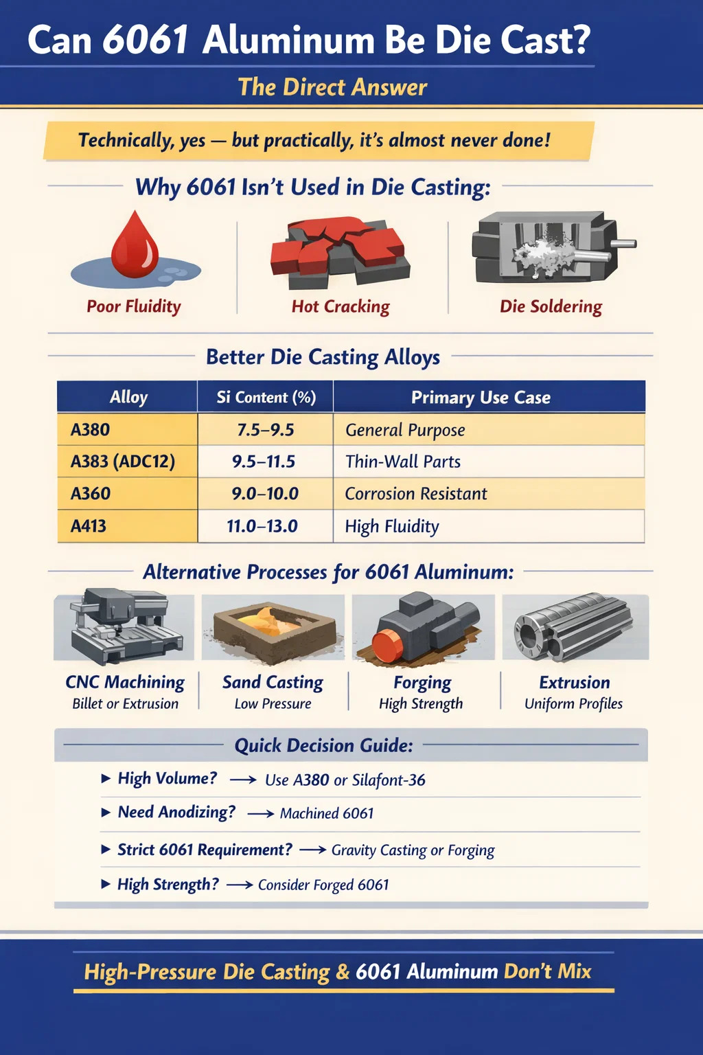 Môže byť hliník 6061 odlievaný pod tlakom? Priama odpoveď